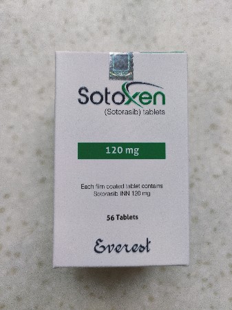 索托拉西布/索拖拉西布(Sotorasib) 是一种具有G12C突变的Kirsten大鼠肉瘤病毒癌基因(KRAS)的直接抑制剂,在II期临床试验(Code- BreaK100)结果的基础上,被美国美国食品药品监督管理局(FDA)批准作为含有KRAS G12C突变的局部晚期或转移性非小细胞肺癌(NSCLC)的二线治疗。